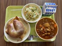 「ポークビーンズ」は、アメリカの伝統料理のひとつです。1860年代の南北戦争当時のアメリカ陸軍の食事として缶詰で支給されたのが始まりと、あります。豚肉と豆をトマトなどで煮込んだ料理は、タンパク質たっぷり!日本では大豆を使いますが、本場アメリカでは、白インゲン豆を使うことが多いそうです。(献立表から)