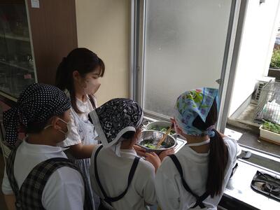 5年生は家庭科の調理につながるオリエンテーションの場面。