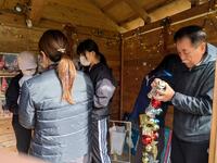 餅を丸めるのも体験。シワを中に入れ込むのに苦労しながらもニコニコしながら丸めていました。