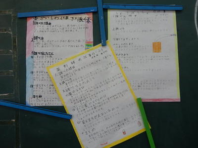 「学校だより読んでますよ、文章がロマンチック・・・!」とほめていただきました、ありがとうございます。