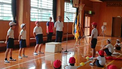 7月8日(火)本校ホールにて、御所浦小学校少年消防クラブの入部式が行われました。天草広域連合御所浦分署から署員3名にご来校いただきました。入部式では、規律訓練や講習も実施され、早速気合いが入った子どもたちです。小さな防災リーダーとして、御所浦の安全を守ってくれることでしょう!