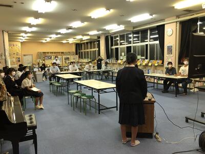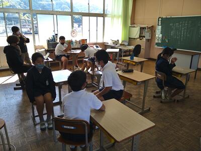 本日、東京都の明星大学の学生さん8名が、本校の教育活動の視察訪問に来校されました。皆さんは、へき地教育について自主的に学習をされている方々で、高い志を持たれています。歓迎会では、はつらつとした学生さんの姿に、子どもたちの目も輝いていました。3日間という短い期間ですが、御所浦小の子どもたちとの交流を満喫してほしいと思います。