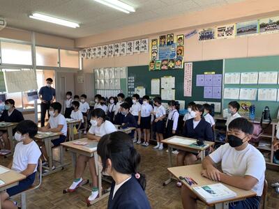 本日は、不審者対応避難訓練でした。駐在所の川越様ご指導のもと、不審人物への対応、児童の避難、職員訓練を実施しました。真剣な眼差しで話を聞く子どもたちの姿がよかったです。児童も職員も危機管理の意識を高めることができました。地域も本校も支えてくださる川越様に感謝しかありません。