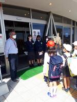 学校横桟橋に着くと、先生方がお出迎えしてくださいました。活動を校長先生に報告。