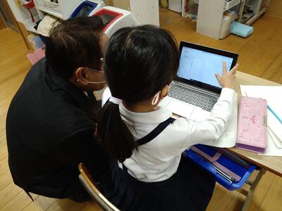 のびのび学級です。E-boardという学習ソフトを使って、算数の復習を行っていました。