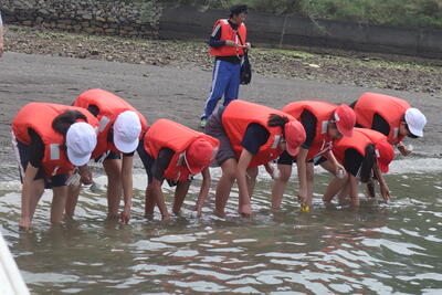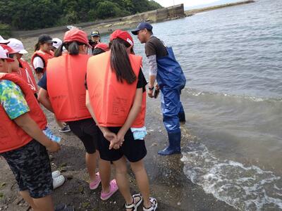 これまでヒラメや車エビの稚魚放流を経験させていただきましたが、今日はマダイの放流を体験しました。稚魚のつかみ方にも慣れてきたのか、これまで以上にスムーズに放流できていたと思います。