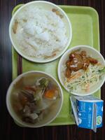 さて、今日の給食はナムル、春巻き、麻婆豆腐でした、中華定食って感じです。おいしくいただきました。