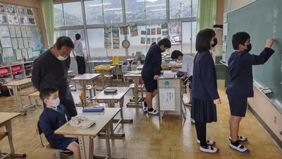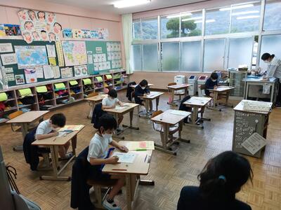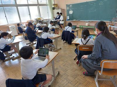 授業にさらに磨きをかけるため、天草市教育委員会から来ていただきサポートしていただく日でしたが、コロナ禍中止となり、それでも自主的に授業を公開した清田先生に拍手です!