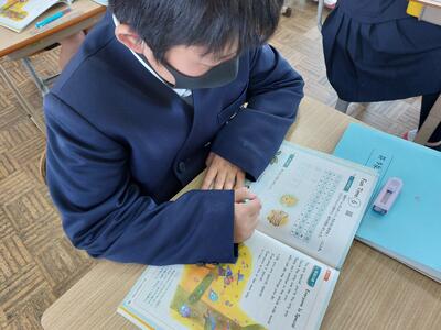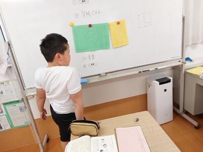 国語、自分の考えのところにネームプレートを貼っています。意志決定をして学習を進めることは大切です。ご家庭でも、自己決定を意識させると成長の変化があるかもです。