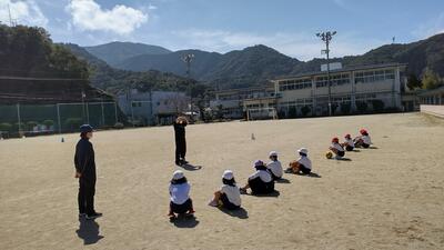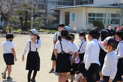 ちゃんと写っていないのですが、というかそんないいシーンを写真に収めるのは難しいのですが、児童玄関から出てきた5年生が、運動場を見てハッとして走って行くシーンです。