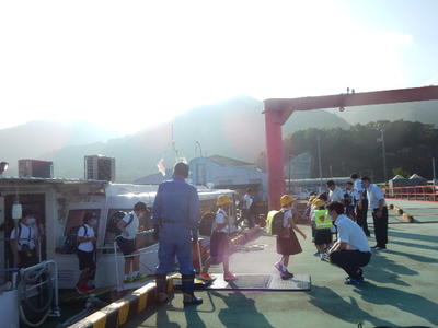 1学期最後のスクールボートが浮桟橋に近づいてきました・・・。