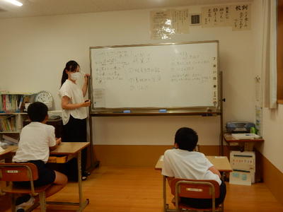 今日は、天草市教育委員会の先生、御所浦中学校の先生、東京からの学生さん(キャラバン隊)が来校されました。2時間目の5年生の国語の授業では、タブレット端末に自分の考えを残しながら、話し合いが行われました。児童は、緊張しながらも話し合いが少しずつ活発になっていく姿が見られました。緊張の中での授業、これも大切な経験です。