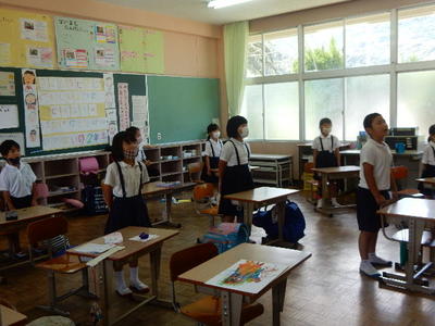 学校が再開してからのみなさんのがんばりはとてもすばらしかったと思っています。校長先生は、みなさんの授業を観ていて、担任の先生の言うことをきちんと聞いて、課題に向かってがんばっている姿をたくさん観ることができました。また、担任の先生との約束事をきちんと守れるようになって、授業に向かう姿勢もとても良くなった人など、1学期で成長した人もたくさんいます。
