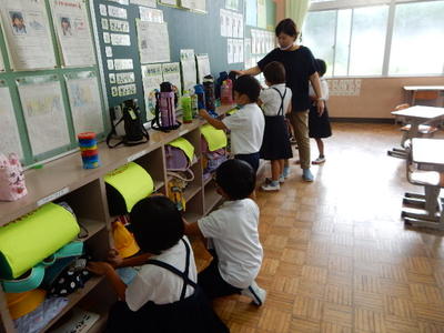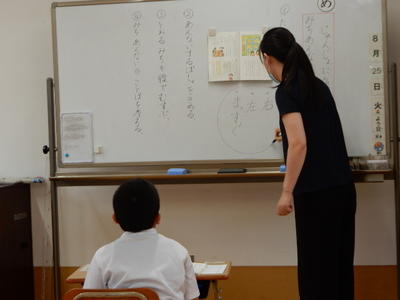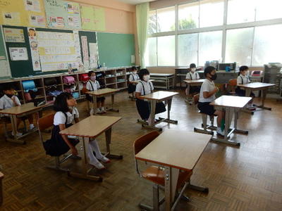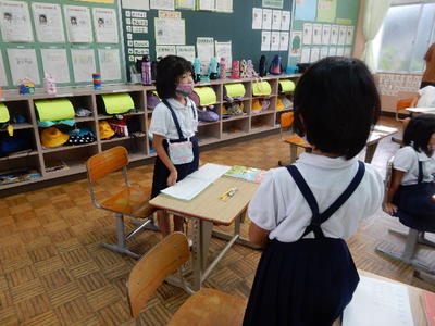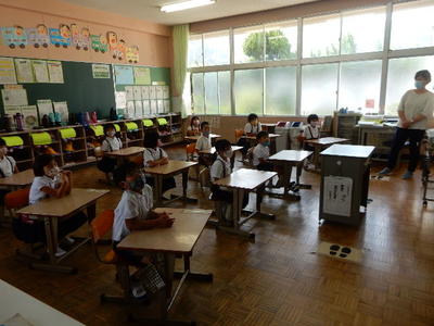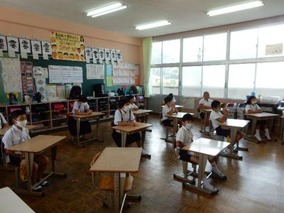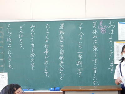 各教室では、夏休みのことを話したり、宿題を紹介したり、さっそく授業を始めたりとさまざまでした。