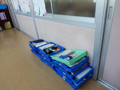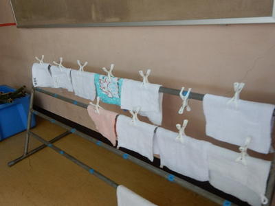 新しい白いぞうきんが並ぶのも新学期あるある・・・。