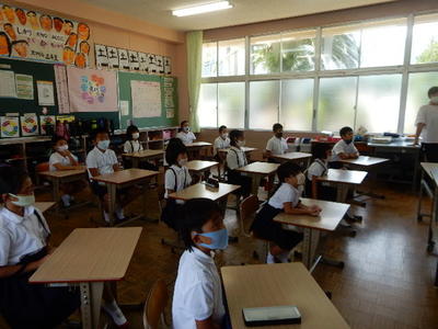 2学期も、健康、安全に気をつけながら、元気に学校生活を送っていきましょう。これで私からの話を終わります。」