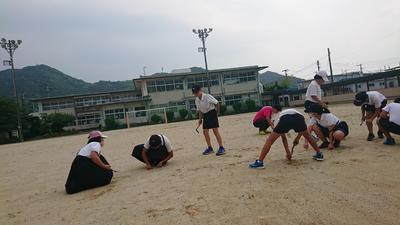 ①運動場のフィールドの草を根から取る。