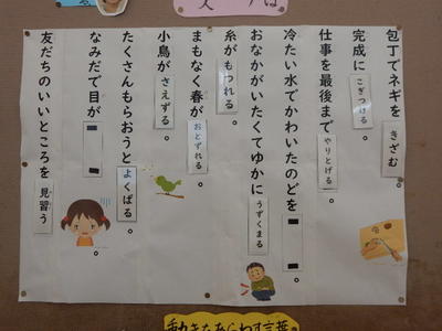 テーマは『自分たちにできることにどんどんチャレンジしよう』です。今の自分ができるようになったことは何がありますか?たくさんあるのではないかと思います。できることは人それぞれです。運動や勉強で一度できたことを繰り返し続けることでもっと上達して何度でもできるようになるはずです。次の学習の準備やくつならべなど、今あたりまえにやっていることをやり続けることで自然とできるようになるかもしれません。そういったできることを積み重ねていくと新しいことをできるようになるチャンスがやってくるかもしれません。
