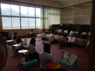 校長室で仕事をしていると、体育館の方から「鉄腕アトムのテーマ曲」が軽快に流れてきました。音楽に惹かれて体育館へ向かうと、11月の天草郡市音楽会に向けて、本校の3・4年生が一生懸命練習している姿がありました。演奏は以前よりも力強くなり、音のまとまりや集団としての一体感も感じられるようになってきました。すばらしい!