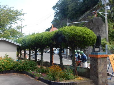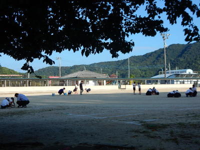 7月23日(水)、御所浦小中合同でボランティア活動を実施しました。中学校の生徒さん方がリードしながら、自分たちの地区で清掃活動に取り組みました。お菓子の袋やペットボトルなどのゴミを拾い、御所浦の環境をさらにきれいにしてくれた子どもたちです。ちなみに、写真の奥に見えるのは八代海です。遠くには九州山地も、うっすらと姿を見せていました。美しい景色と捨てられたゴミの対照が、なんとも印象的でした。