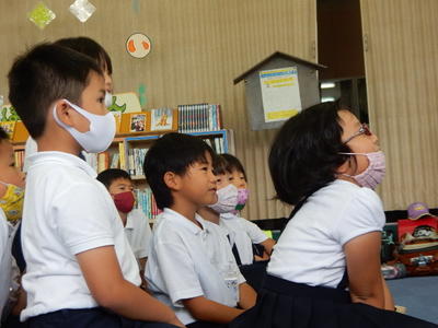 「御所浦小学校のみなさん、こんにちは。校長先生が、終業式でお話をしてから、今日がちょうど20日間め、2学期の始業式となりました。
