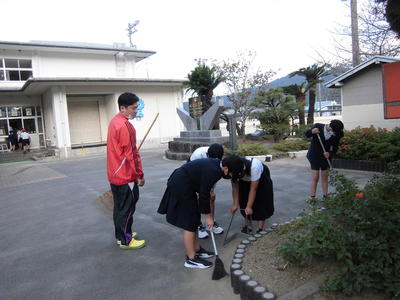 7月23日(水)、御所浦小中合同でボランティア活動を実施しました。中学校の生徒さん方がリードしながら、自分たちの地区で清掃活動に取り組みました。お菓子の袋やペットボトルなどのゴミを拾い、御所浦の環境をさらにきれいにしてくれた子どもたちです。ちなみに、写真の奥に見えるのは八代海です。遠くには九州山地も、うっすらと姿を見せていました。美しい景色と捨てられたゴミの対照が、なんとも印象的でした。