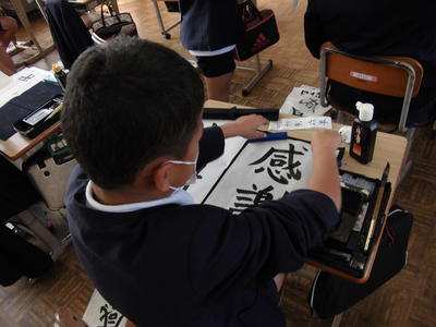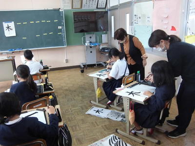 3年生、濵本様、早速の毛筆指導、ありがとうございます・・・。