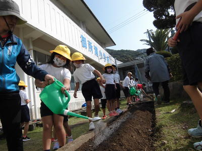 本日、船に乗ってアマモの植え付けに6年生と行ってきました。さすが御所浦の子どもたち。恐れることなく乗船し、船での行き帰りを楽しんでいました。アマモは、海の環境改善や生物の生息地の提供など、重要な役割を果たしています。これから、繁殖した様子を想像しただけでもワクワクします。御所浦漁協及び水産研究センター皆様、貴重な体験ありがとうございました。