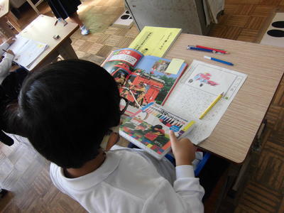 1年生、国語、絵本の紹介文をこの前からがんばっています・・・。
