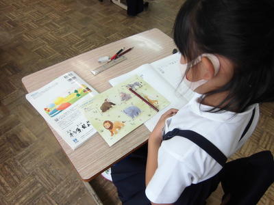 1年生が、作業に入りかけたときに、「『3びきのこぶた』とのタイトルの『3』は縦書きにしたときに『三』にするんですか?」と子どもから質問がありました。国語で縦書きのときは『三』と漢字で書くように学習したからです。すかさず作業を止めさせて全体でそのことを確認する恵子先生・・・。さりげないこのひと手間が思考力を育てます。疑問があったらしつもんすればよいということと疑問を口にすると解決するということとを学ぶことができます。実は先日のテクノロジー体験講座の京都造形芸術大学の吉田先生も強調されたところです。それをひとつひとつ解決して前に進んでいく人と、解決しないもしくは疑問点に気づかない人とでは、日々の学びの中で思考力等において成長に差が出てしまうと言うことです。学校の日々の活動でもそうです。言われて1回で指示を守れる人と何回か言われてやっとでいる人とでは、同じように毎日を過ごしていても収穫する情報や学びには差が出てしまいます。この「疑問を持つ力」と「疑問を解決しようとする力」が身につけば、歩いている道の草花やお店に並ぶ商品やテレビ番組の情報も学びのネタとして吸収できるようになります。
