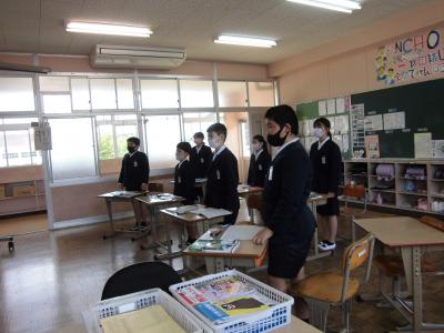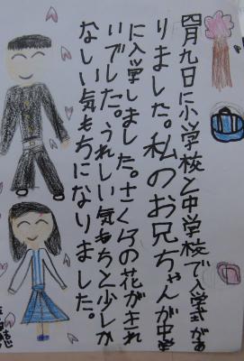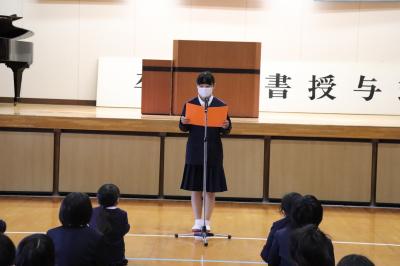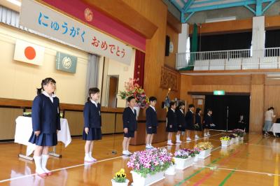 新しい学校で心配なこともあるかもしれませんが、分からないことはぼくたちに聞いてください。ぼくたちも先生方の名前を早く覚えて楽しい学校生活を送りたいと思います。どうぞよろしくお願いします。」
