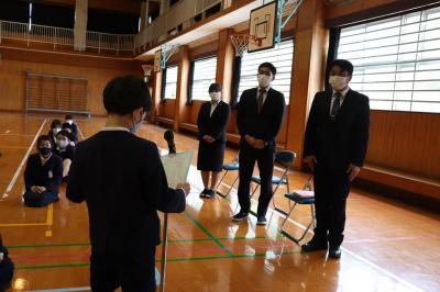 今までお世話になった先生方とお別れし、さびしい気持ちでいましたが、今日、新しい3名の先生方をお迎えすることができ、とてもうれしく思います。