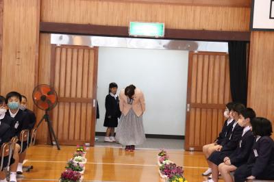 最高学年6年生代表児童のお迎えの言葉もすばらしく・・・。