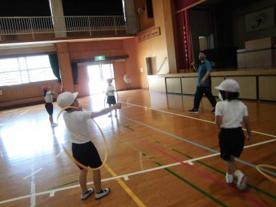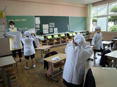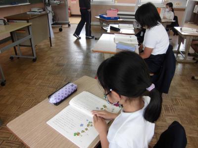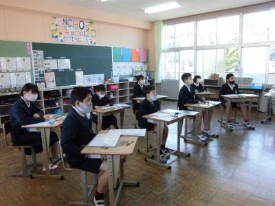 机に着替えが畳んでおいてあるということは、5年生は体育ですね・・・。
