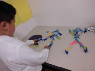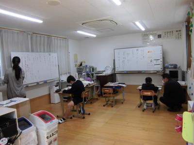 のびのび、このように、のびのび教室で学習をする子、交流学級で学習に参加する子が森先生のカリキュラムのもと、組み合わさっています・・・。