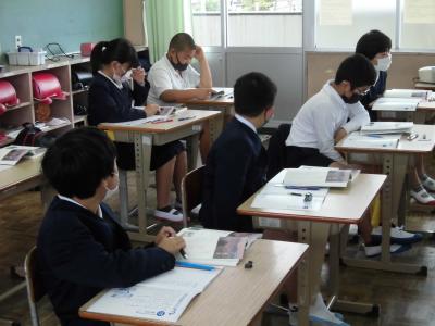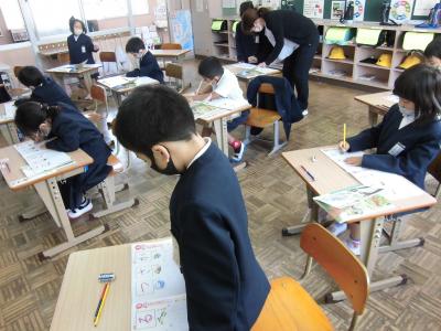 ワークシートに書くために中村先生が指定した時間は3分。3分後、次の活動へと移ります。終わってないからあと1分とかしているといつまでもタイムロスはなくなりません。たぶん4月からの学習で作業時間の設定の確認をしているのでしょう(ナイス)。