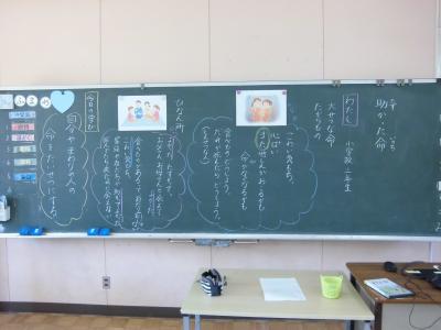 価値の確認をしたところからの今日扱う教材へと入っていきます。価値の確認から教材の提示までの流れがとてもスムーズ(ナイス)。(まるでテレビ番組「知ってるつもり?」の関口宏さんのような・・・)
