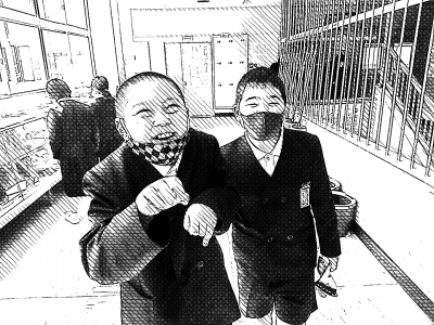 2つめ、「プログラミング力」だったら、委員会や係活動などで自分たちの企画を実行してみるといいですね。例えば昨年度企画運営委員は、どうやったらあいさつができるようになるか考えて「朝のあいさつボランティア」を始めてがんばった人にはスタンプやシールや賞状を用意したことはこのプログラミング力を鍛えることができたと思います。鬼滅の刃のキャラクターで例えると、プログラミング力は、嘴平伊之助・・・。しっかり考えて、プログラミングして動きますよね、の逆ですよね。プログラミング力は伊之助の反対と覚えてください。