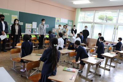 岩下健太郎教頭先生、田嶌駿樹先生、田島未和子先生、ようこそ御所浦小学校へ。