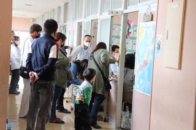 朝のあいさつ運動は時間がない中、たくさんの子どもたちが参加しました・・・。