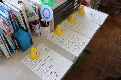 その後、席に戻ります。発表です。一旦全員立つと、発表をした子から座っていく方式です(ナイス)。