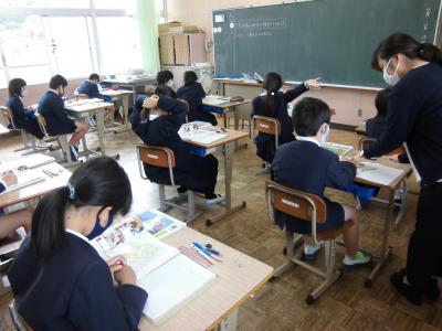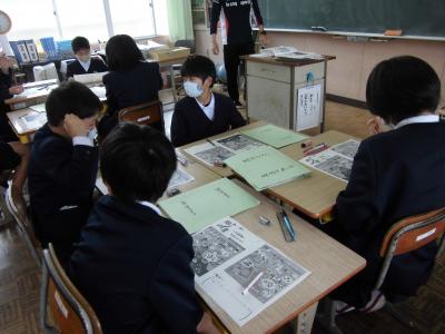 最も特徴的なことは「タイムコントロールの妙」です。子どもたちと合意のうえで、授業が効率よく進みます。今日はあえて時刻を記入していますが、基本的に5分単位で授業が展開していきます。おそらく、6年生と中村先生の合意は、読み取る、書き込む、話し合う等のやり方のパーツを組み合わせながら授業が展開していくと言うこと、つまり他の教科や内容でも、そのパーツの組み合わせにより、授業が効率よく展開していくと推測できます。