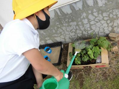 あなたたち去年もでしたよね。一生懸命水かけをして、芽が出たときはめっちゃよろこんでいました!