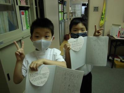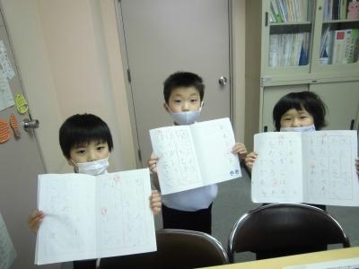 上手に書けたノートをうれしそうに見せてくれました・・・。