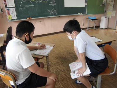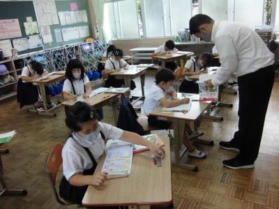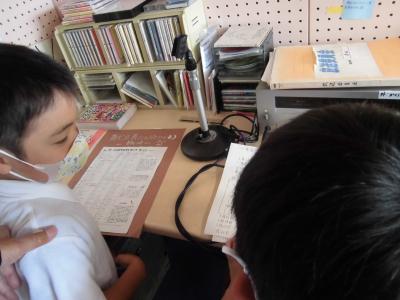 4年生、宿題の確認・・・。