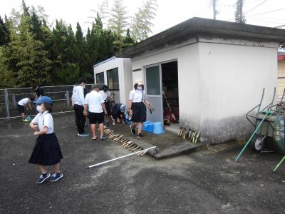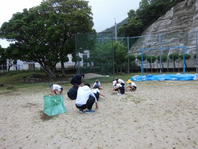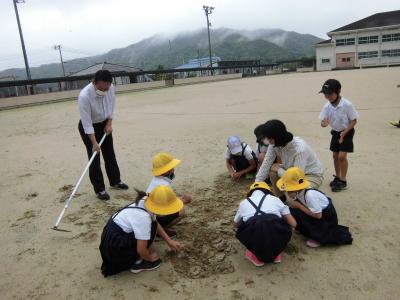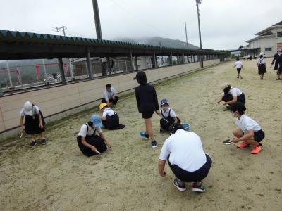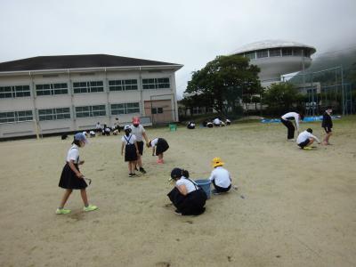 午後、私が運動場の草取りをしていました。