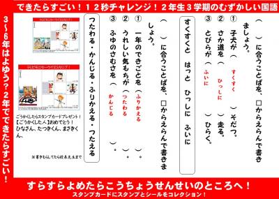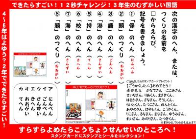 4年生、国語・・・。