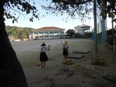 7:35に登校した子が7:40には出てきて落ち葉を掃く・・・。