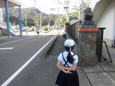 7月23日(水)、御所浦小中合同でボランティア活動を実施しました。中学校の生徒さん方がリードしながら、自分たちの地区で清掃活動に取り組みました。お菓子の袋やペットボトルなどのゴミを拾い、御所浦の環境をさらにきれいにしてくれた子どもたちです。ちなみに、写真の奥に見えるのは八代海です。遠くには九州山地も、うっすらと姿を見せていました。美しい景色と捨てられたゴミの対照が、なんとも印象的でした。