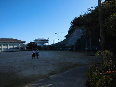 今日の昼休み、大谷選手からいただいたグローブをはめて、担任の先生を相手にキャッチボールをする児童の姿を発見!大谷選手の二刀流復帰の次の日に、こんな光景を御所浦小学校運動場で見ることができるとは、何とも幸せです。ボールがグローブにおさまったときの「パシッ」という音が、心地よく感じられた昼休みでした。